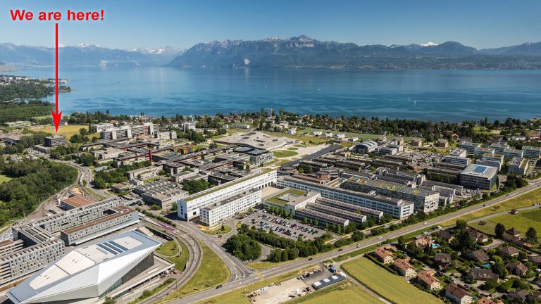 We are located in the Cubotron building on the Lausanne Campus in Dorigny, which is at the border between the EPFL and the UNIL.